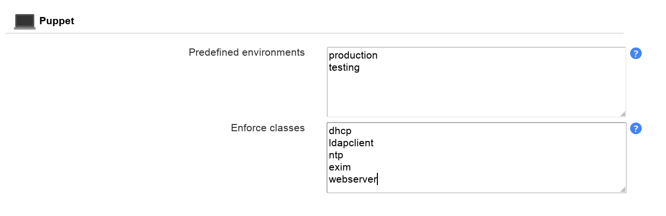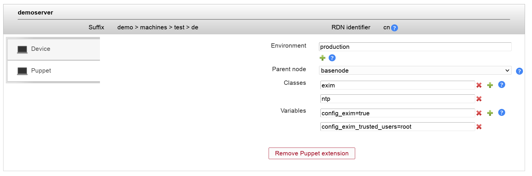 LAM supports to manage your Puppet configuration. You can edit all attributes like environment, classes, variables and parent node.