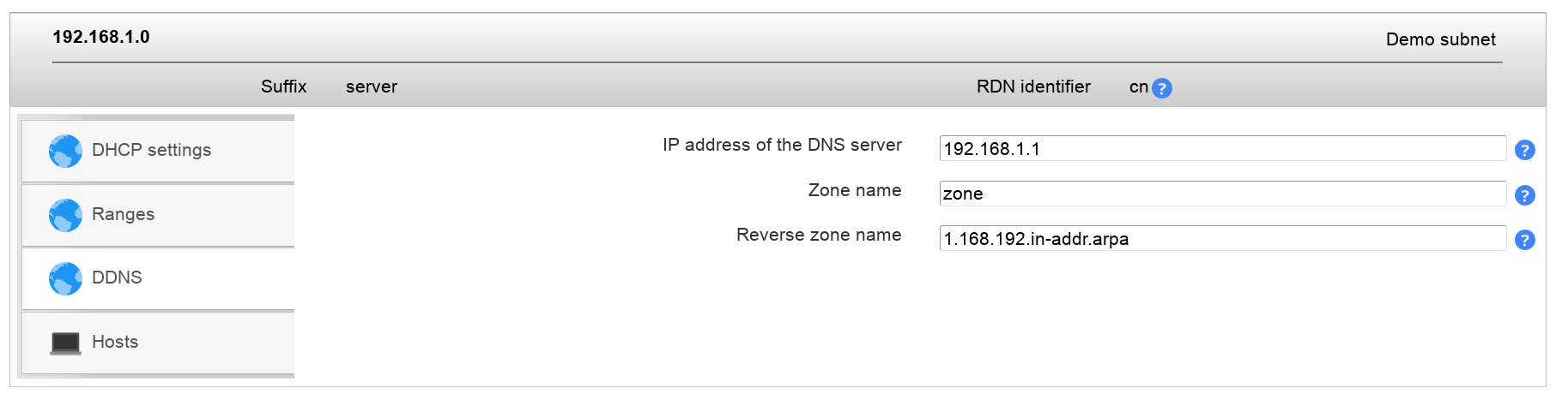 If you activated DDNS in the server entry then you may also specify the DDNS settings for this subnet.