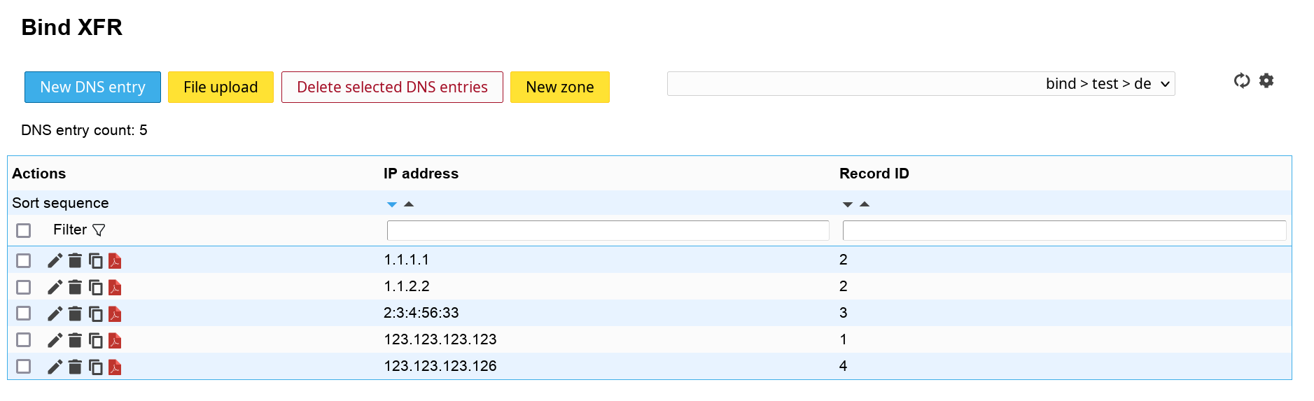 For regular entry management use "DNS entry (bindDLZ)(*)" module.