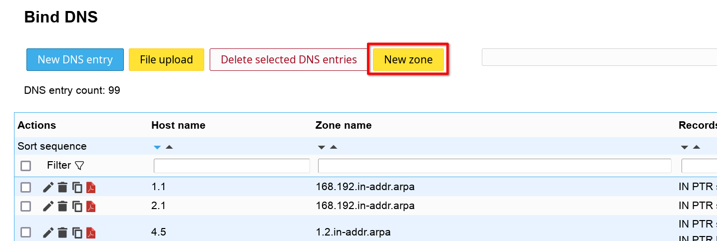 Hint: If you use the function above to create a new zone then please skip the "@" entry in the CSV file below. LAM creates this entry with sample data.