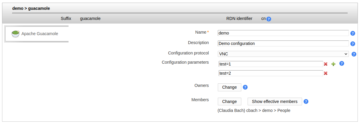Now you can manage the Guacamole entries with protocol and