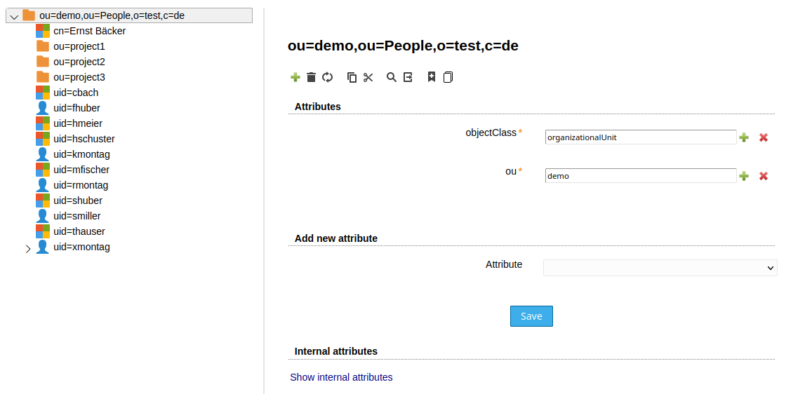 The tree view provides a raw view on your LDAP directory. This feature is for people who are experienced with LDAP and need special functionality which the LAM account modules not provide. E.g. if you want to add a special object class to an account or edit attributes ignoring LAM's syntax checks.