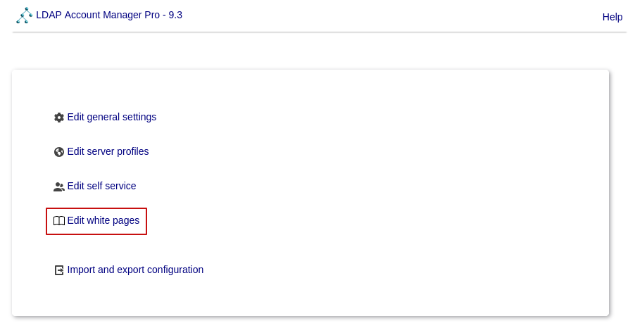 When you go to the LAM configuration page you will see the white pages link at the bottom. This will lead you to the white pages configuration pages