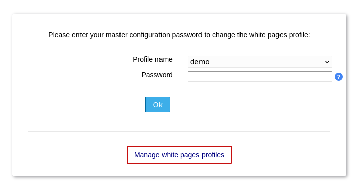 Now we need to create a new white pages profile. Click on the link to manage the white pages profiles.